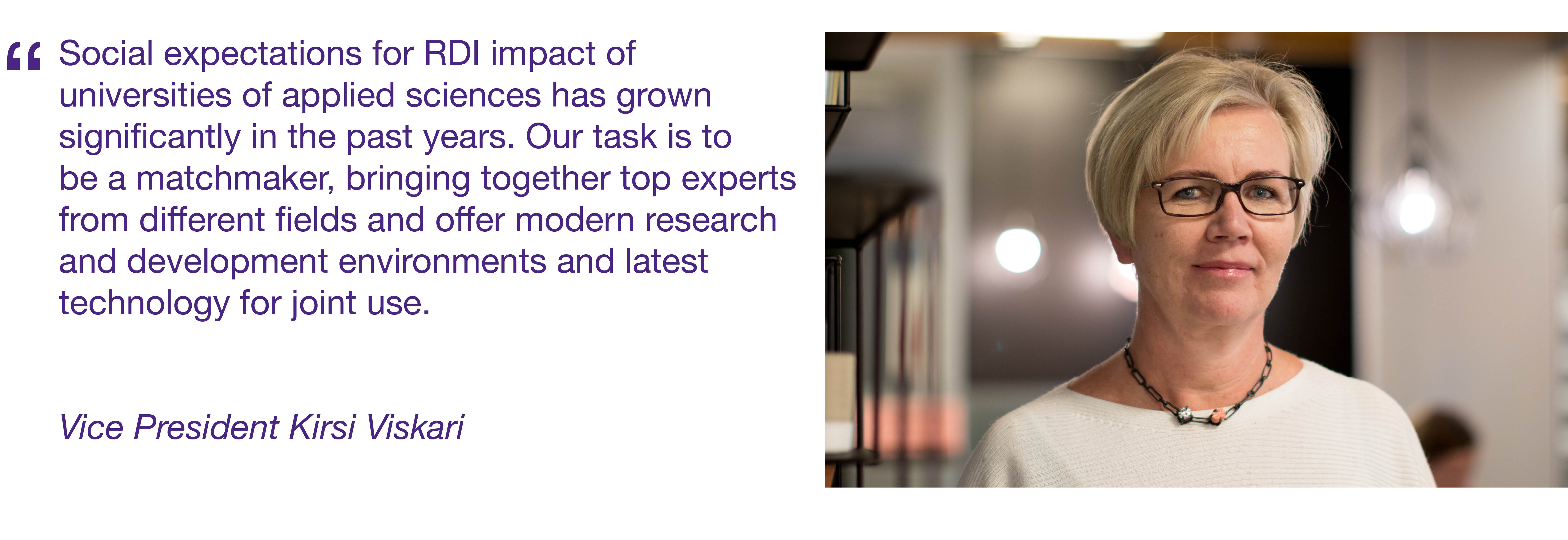To strengthen our research and development and increase cross-cutting in all fields, we developed new impact area activity in 2019 as a part of TAMK’s new strategy. We selected three themes in the impact focus areas: learning in working life and international networks, use of new technologies, and ecological innovations and sociocultural challenges. The new strategy aims at making TAMK also internationally known for its effective RDI which combines science and practice.