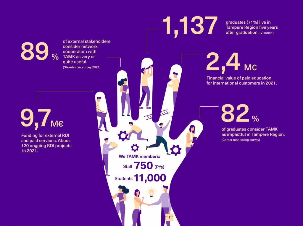 Welcome to the annual review of Tampere University of Applied Sciences. On these pages, you can read about our results for 2021, our achievements and the highlights of what we do everyday.