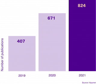 The new incentive system of 2020 especially motivated TAMK staff to publish blog articles. The number of publications raised into a new record, 824 publications. The number of publications doubled in two years.