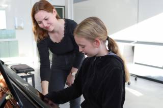 Minä olen kyllä tykännyt käydä täällä tunneilla, en usko, että kyllästyn soittamiseen. On kiva, kun saa Hilmalta rehellisen mielipiteen. Ja Hilma ei ole liian tiukka, edetään sopivaan tahtiin eikä tarvitse stressata, Sofia juttelee.