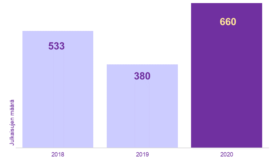 Vuoden 2020 aikana luotiin julkaisuihin liittyvä kannustinjärjestelmä. Tämän ansiosta muutaman vuoden laskusuunnassa ollut julkaisujen määrä nousi ennätystasolle, 660 julkaisuun. Määrä kasvoi edellisestä vuodesta 76 %. Varsinkin blogit tarjosivat tamkilaisille innostavan alustan julkaisemiseen.