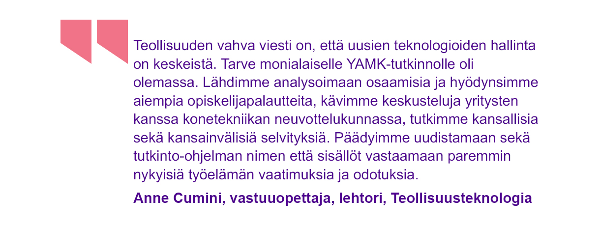 Ylempi ammattikorkeakoulututkinto tuottaa työelämän muutoksiin uutta ja vaativaa asiantuntijaosaamista. Palaute ja osaamisen ennakointi auttavat TAMKia uudistamaan YAMK-tutkintoja.