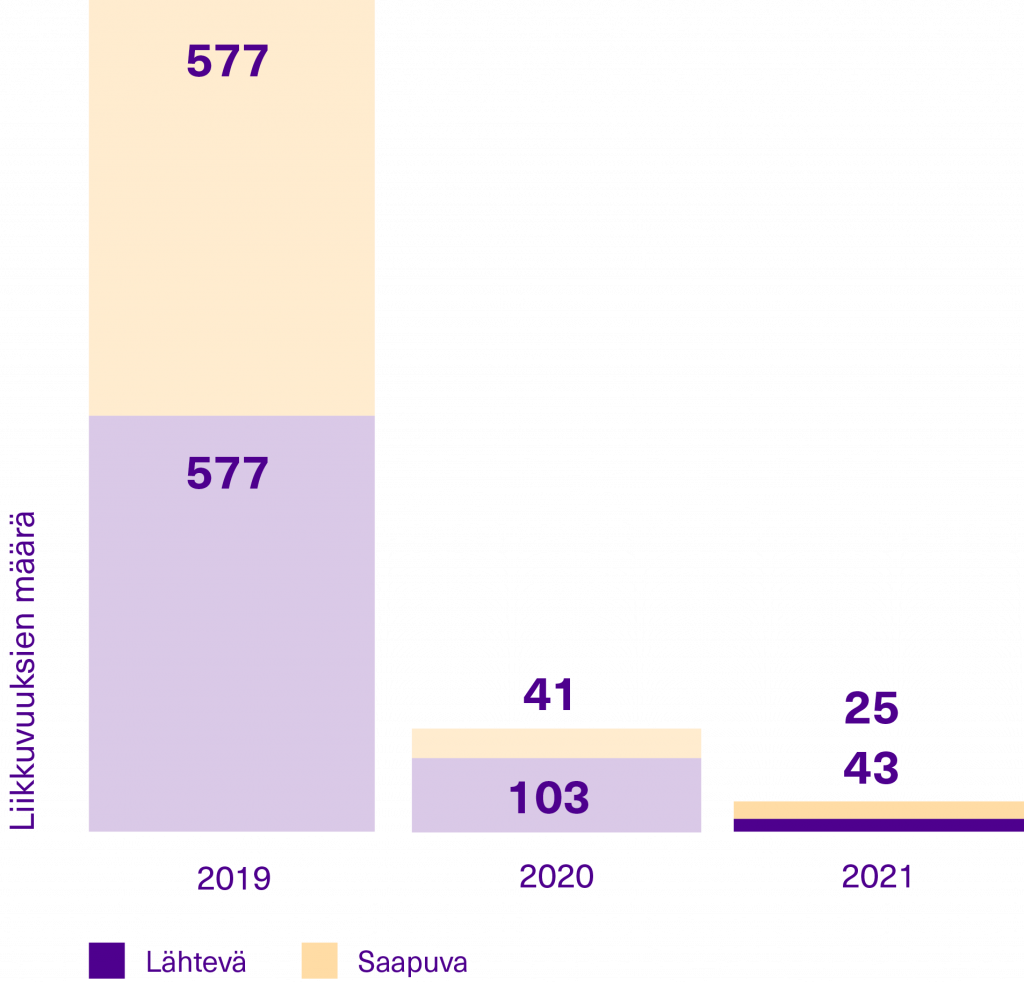Vuosi 2021 oli vuoden 2020 tapaan koronapandemian vuoksi hyvin poikkeuksellinen. Opiskelijavaihtoja peruuntui edelleen ja luvuissa jäätiin hyvin heikolle tasolle verrattuna aikaan ennen koronapandemiaa.