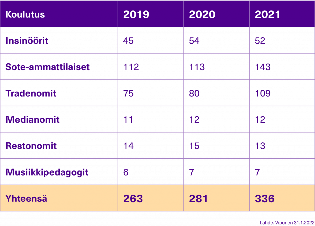 YAMK-tutkinnon suorittaneiden määrä on kasvanut vuosittain. Vuonna 2021 valmistuneiden määrä oli jo 336.