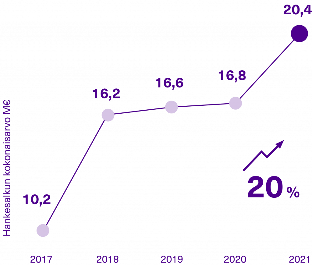 TKI-toimintaa painotetaan TAMKin strategiassa ja sitä on lähdetty edistämään tavoitteellisesti. TKI-hankesalkun arvo on jatkanut kasvuaan, ollen vuoden vaihteessa 2020-2021 yhteensä 20,4 M€. Kasvua edeltävään vuodenvaihteeseen 20 %.