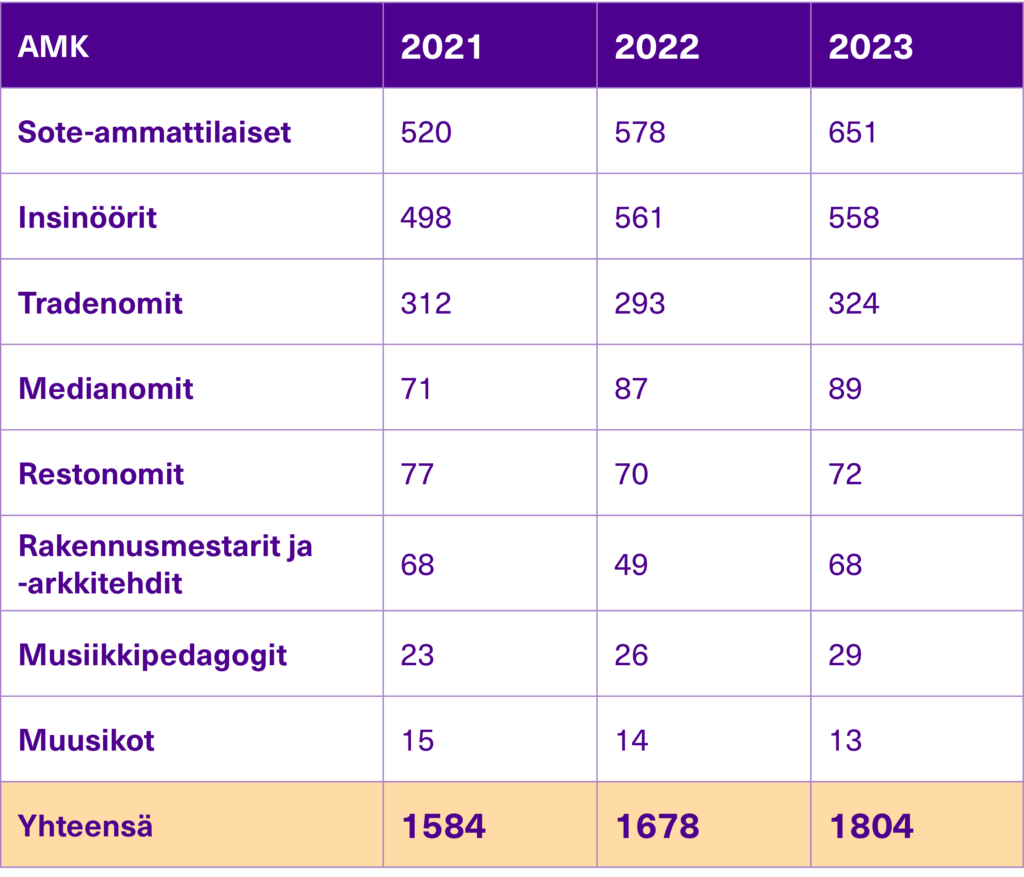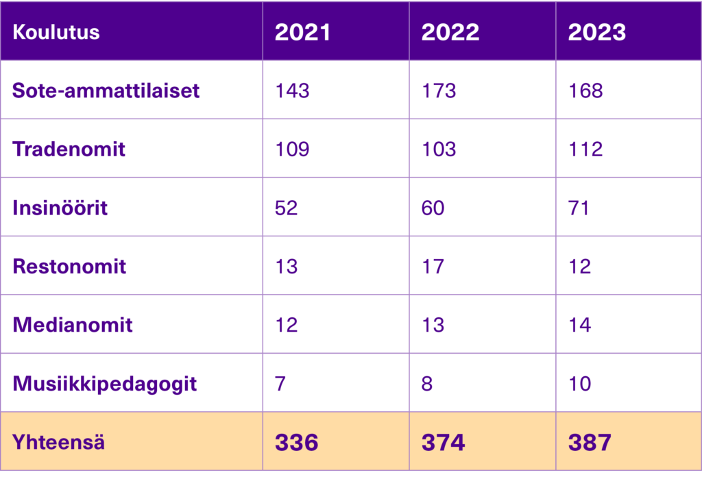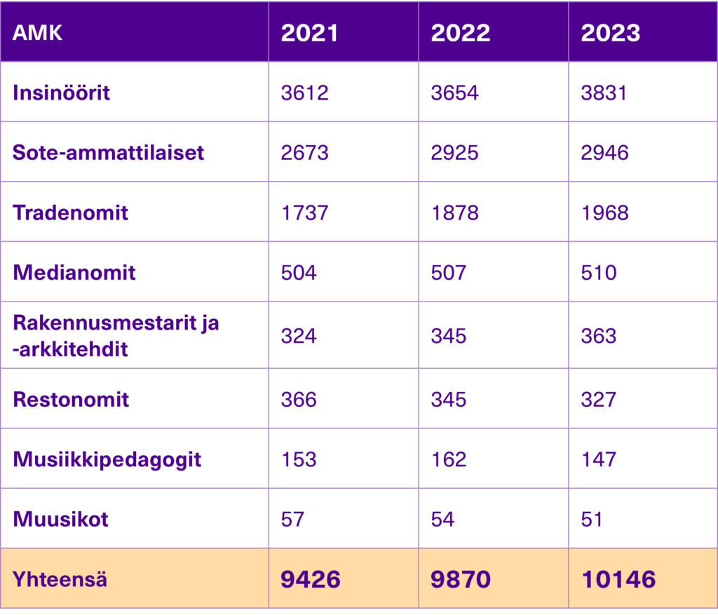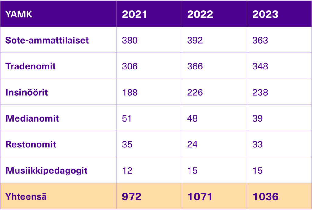 Koulutusmäärien kehitys AMK-tutkintoa opiskelevat YAMK-tutkintoa opiskelevat Ammatillisen opettajankoulutuksen opiskelijat Valmistumismäärien kehitys AMK-tutkinnon suorittaneet YAMK-tutkinnon suorittaneet Ammatillisen opettajankoulutuksen suorittaneet