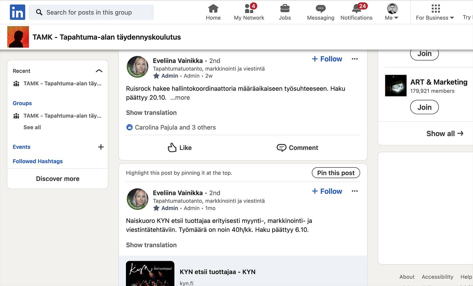 Kuva: Ruutukaappaus LinkedIn-ryhmän sivusta (Antti Haapio)
