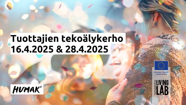 Tuottajakahvit X Forumteatteri Jyväskylä 17.12.2025.kahvikuppi. Humak logo. Tuottajakeskus Living Lab logo. Euroopan unionin osarahoittama logo.