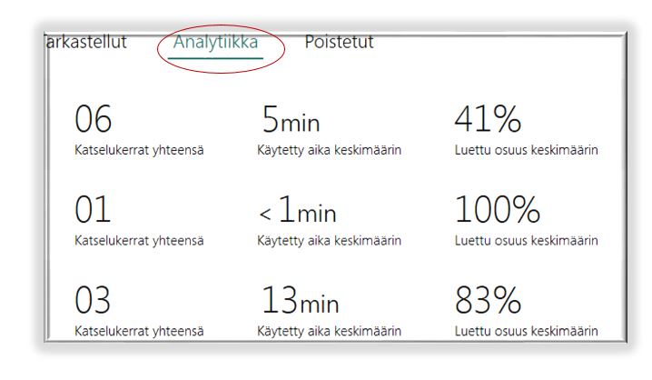 Swayn analytiikkatyökalulla katselukerrat esille 13.8.2018 Materiaalit ja esitykset O365 Oppimistehtävät ja arviointi