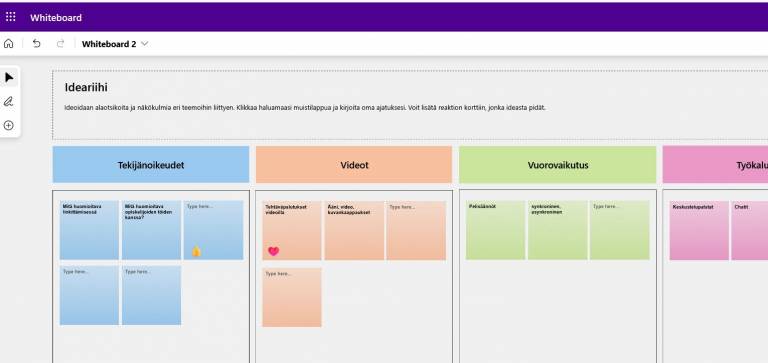 M365 Whiteboard: Ajatusten kerääminen ja aktivointi tapaamisissa 22.11.2024 O365 Oppimistehtävät ja arviointi Vuorovaikutus ja yhteisöllisyys