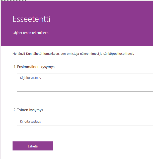 Tenttiminen Formsilla: Esseekysymykset ja -tehtävät 10.3.2020 O365 Oppimistehtävät ja arviointi Sähköinen tentti