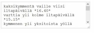 Kirjoita siis tehtävällesi otsikko, kuvaus (esim. ohjeet, kuinka tehdä tehtävä) ja tee varsinainen tehtävä. Kirjoita *-merkkien väliin haluamasi täydennettävä sana. Jos oikean vastauksen voi kirjoittaa monella tavalla, tulee sinun ilmaista kaikki mahdolliset variantit asteriskien välissä kauttaviivalla (/) eroteltuina. Näin ohjelma tietää hyväksyä oikeat vastaukset, sillä muuten pieninkin ison/pienen alkukirjaimen muutos tai pilkun/pisteen puute johtaa väärään vastaukseen. Valmiina tehtävä näyttää tältä: