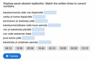 Samalla tavalla toimii Drag and Drop -tehtävä, joskin siinä raahataan kuvia sanojen päälle/viereen tai toisinpäin.