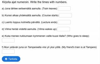 Jos valitset täydennystehtävän, näyttää itse tehtävä tältä:
