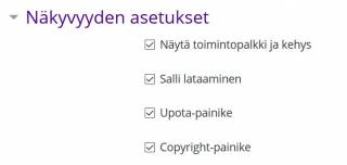 Huomaathan, että tehtäviä voi tehdä mobiililla tai tabletilla. Tällöin sinun kannattaa huomata, ettet tee tehtävistä liian pitkiä. Liian pitkien tehtävien vaihtoehdot nimittäin menevät sivun alalaitaan, jolloin opiskelija joutuu jatkuvasti kelaamaan sivua ylös ja alas. Näin motivaatio tehtävän tekemiseen saattaa laskea. Sen sijaan voit tehdä useamman lyhyemmän tehtävän ja lopuksi luoda yhden isomman tehtävän, jonne tuot valmiit lyhyet tehtäväsi. Tämä onnistuu kopioi-toiminnolla uuden tehtävän yläkulmassa otsikon yllä. Jotta voit kätevästi kopioida tehtäviäsi, muista käydä ruksimassa aiemmista tehtävistäsi ”Salli lataaminen” ja tarvittaessa ”Upota-painike” (Nämä löytyvät heti tehtävän lopusta Näkyvyyden asetuksista.)