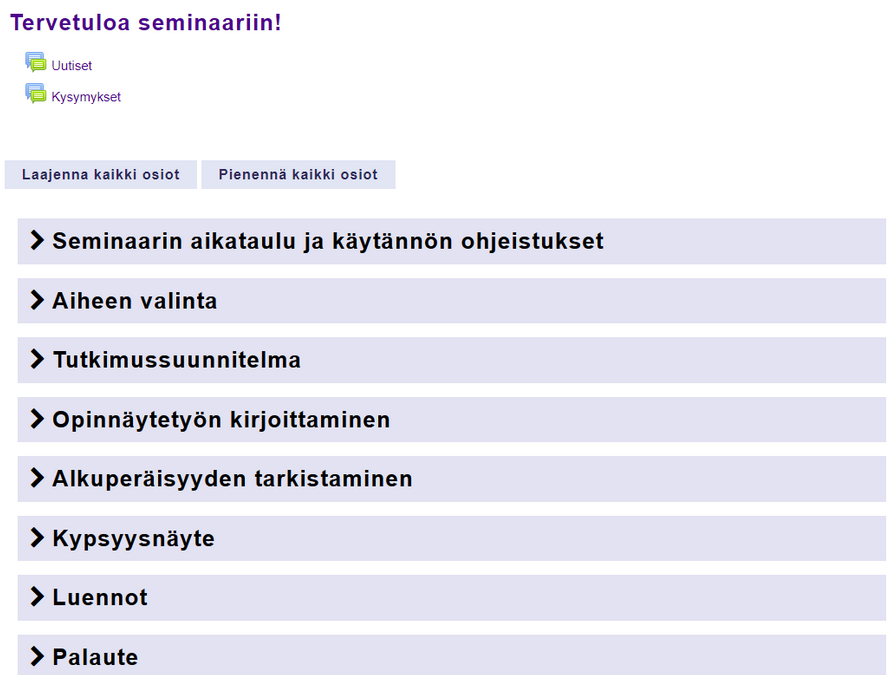 Seminaari -pohja on suunniteltu erityisesti seminaari-tyyppisille ja opinnäytetyökursseille.