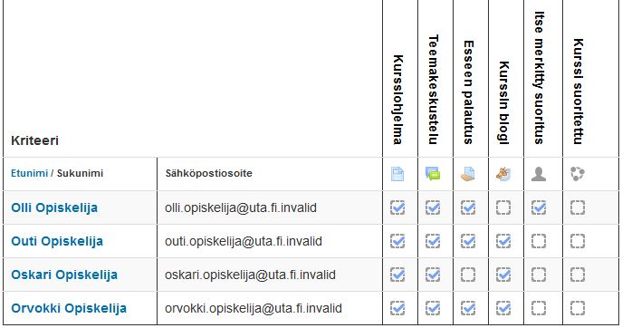 Näytä opiskelijoille heidän edistymisensä opintojaksolla ja eri tehtävissä