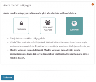 - Aseta merkki julkiseksi, mikäli haluat näyttää osaamistasi muille.