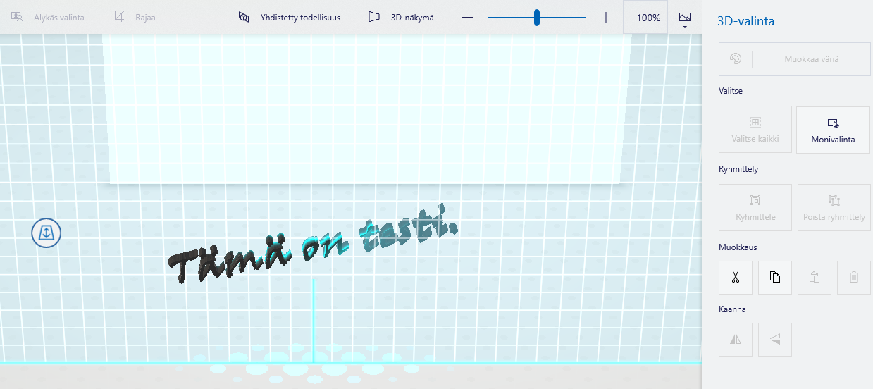 Rajauksen tehtyäsi objekti saa 3D-ominaisuudet, ja voit käännellä sitä 3D-objektin tavoin.