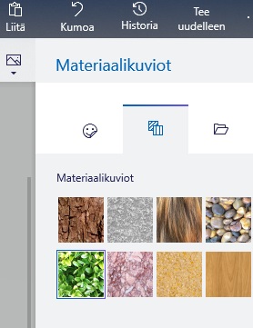 Voit tuoda omia kuvia muokattaviksi kopioimalla oman kuvasi ja liittämällä oikean yläkulman ”Liitä”-napin kautta.