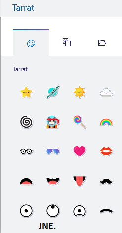 Tarroja voit käyttää joko perinteisen tarran omaisesti piristämään jotakin objektin osaa tai täyttämään objekteja. Vetämällä tarraa pidemmälle se kietoutuu automaattisesti 3D-objektin ympärille. Taustaa voi myös liikuttaa objektin sisällä hieman eri kohtaan. Tarjolla olevia materiaalikuvioita ovat esim. puu, marmori, kivet ja lehdet. Voit myös tuoda omasta kuvakirjastostasi pohjan tarralle.