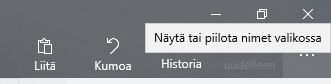 Ensin, mikäli sinulla ei perusnäkymässä ole näkyvissä toimintojen nimet, saa tämän ominaisuuden käyttöön oikean yläkulman kolmesta pisteestä: