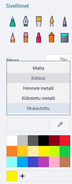 Kynät ja siveltimet jäljittelevät oikeita materiaaleja. Saatavilla on esim. öljyväriä sekä spraymaalia eri pinnoin. Siveltimet toimivat sekä piirtoalustalla että 3D-malleissa. 3D-malleja väritettäessä ohjelma tunnistaa kätevästi väritettävän kohteen rajat, jolloin siveltimenvedot pysyvät siististi rajojen sisällä.
