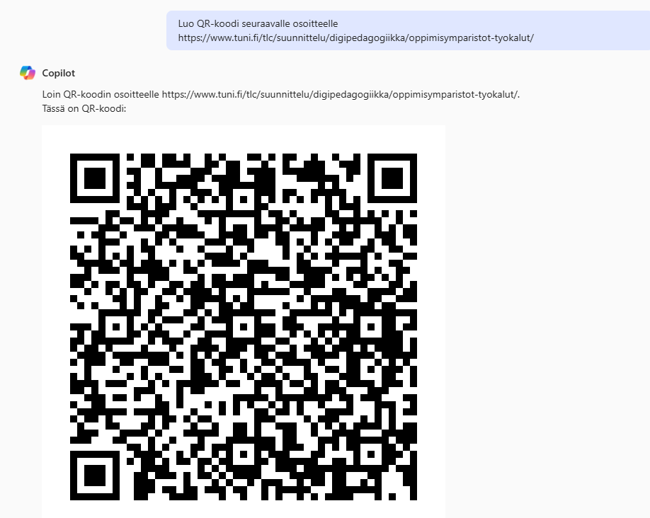 Microsoft 365 Copilot Chat avulla voit luoda nopeasti QR-koodeja mille tahansa URL-osoitteelle.