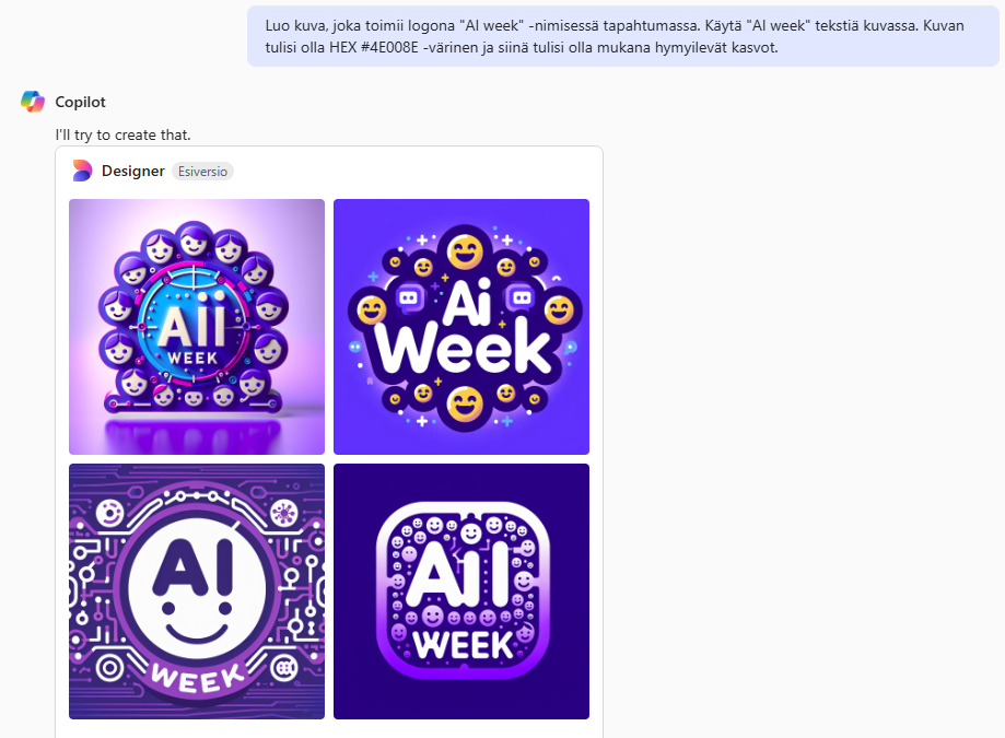 Copilot voi myös luoda kuvia eri tarkoituksiin. Voit pyytää Copilotia luomaan kuvia esimerkiksi tietyn aiheen tai tyylin mukaan. Kuvien luomisesta on kerrottu lisää esimerkkejä tässä vinkissä.