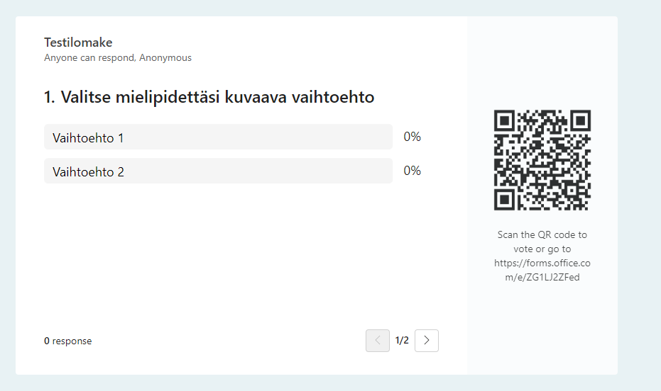 Kummassakin tapauksessa muista varmistaa lomakkeen asetuksista, että valinnat ovat haluamallasi tavalla, esim. kuka saa vastata, näkyvätkö vastaajien nimet.