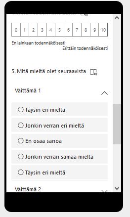 - Likert-asteikon kysymykset