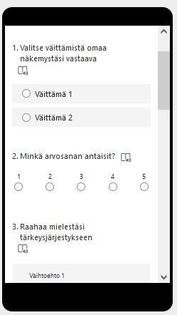 Valittavanasi on useita kysymystyyppejä, mutta ison ryhmän kanssa mielipiteen ja näkemysten kerääminen onnistuu monivalinnan avulla helposti.