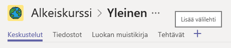 M365-palvelun Teamsissa voit lisätä tiimisi sisältöihin monipuolisesti erilaisia välilehtiä. Välilehdet ovat työkaluja ja toimintoja, jotka näkyvät tiimialueen yläreunassa. Tiimin näkymä säilyy välilehtien avulla organisoituna, ja tärkeimmät osaset löytyvät helposti. Voit luoda välilehtiä mm. M365:n eri työkaluista, erillisistä tiedostoista ja verkkosivuista.
