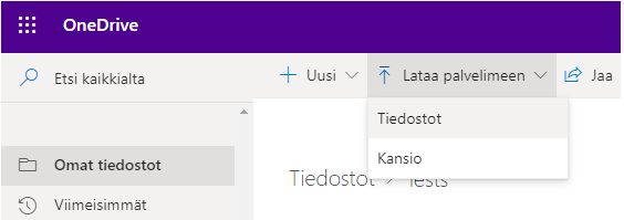 Lisää tai luo tiedosto OneDriveen tai käytä jo siellä valmiiksi olevaa tiedostoa.