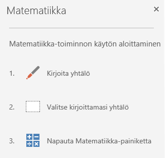Monia matemaattisia merkkejä ja ominaisuuksia ei löydy tavanomaisesta näppäimistöstä. M365:n OneNote mahdollistaa sen, ettei sinun enää tarvitse kuluttaa aikaasi merkkien hakemiseen: sovelluksen matematiikkaominaisuuksien avulla voit mm. kirjoittaa käsin ruudullesi halutun lausekkeen, jonka OneNote muuntaa fonttimuotoiseksi. OneNote myös osaa piirtää kirjoitettuja lausekkeita graafisesti ja avustaa sinua luomaan koordinaatistoja.