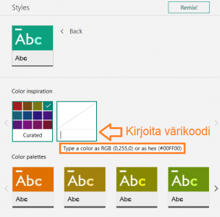 Kirjoita hex-värikoodi auenneeseen laatikkoon. (Voit käyttää myös rgb-värikoodia)