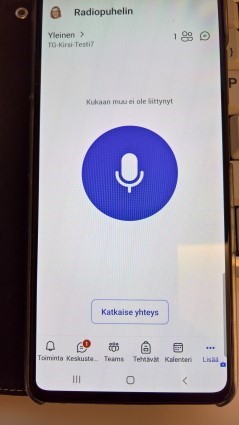 Walkie Talkie on radiopuhelin-sovellus, jonka voi aktivoida käyttöön johonkin Teamsin tiimin kanavaan ja kaikki kyseisellä kanavalla aktiivisena olevat saman Walkie Talkie -sovelluksen käyttäjät voivat keskustella keskenään kuten radiopuhelimella.