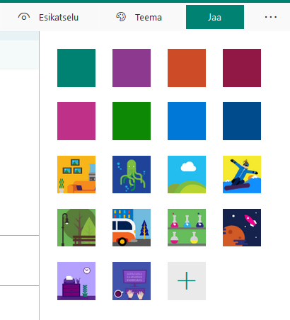 9. Teema -kohdasta voit valita miltä tentti näyttää (taustavärit jne.)