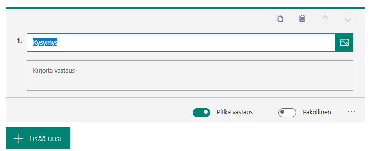 6. Kirjoita kysymys ja valitse alta pitkä vastaus klikkaamalla kohta aktiiviseksi