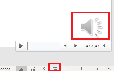7. Voit sukea tallennusnäkymän ja perusnäkymässä näet megafoni-kuvakkeen jokaisen dian reunassa. Voit kuunnella kunkin dian puheen siitä tai koko esityksen alareunan esitys-moodista.