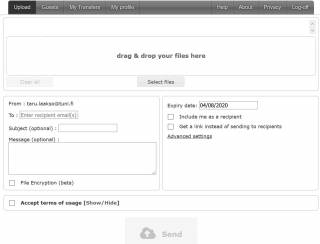 Funet Filesender on käytettävissäsi Tuni-tunnuksella osoitteessa https://filesender.funet.fi/.