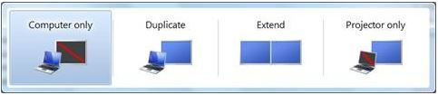 P niin kuin projektori eli paina Win+P, kun haluat säätää näyttötilaa.