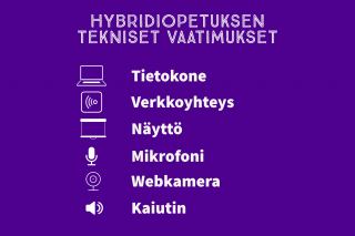 - Opiskelijoita on hyvä tiedottaa etukäteen, millaisia laitevaatimuksia etä- ja lähiosallistumiselle on.