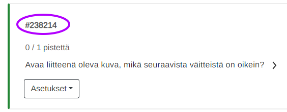 Tentin Kysymykset -välilehdessä näet tunnistenumeroa vastaavat kysymykset.