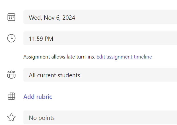 Jos haluat lisätä tehtävänantoon arviointiasteikon, voit muotoilla myös sen tekoälyn avustamana. Valitse tehtävänannon alapuolelta Rubrik/arviointiasteikko-kohta.