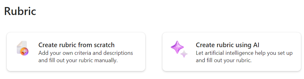 Jos haluat apua tekoälyltä arviointiasteikon muotoilussa, valitse Create rubric using AI