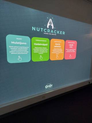 Pähkinä valikosta löytyy pelejä aivoille. Vaihtoehtoja on neljä erilaista: muistijono, hedelmäpeli, kortit sekaisin ja löydä erot. Ohjeet löytyvät jokaisen pelin kohdalta erikseen ja niitä voi pelata niin yksin kuin yhdessä. Maisema valikosta voi valita suomalaisen luonnon maisemista niin vuodenajan kuin vuorokauden mukaan itselleen sopivan halusipa metsäisen tai järvisen maiseman. Maiseman lisäksi voi nauttia luonnon omista äänistä niin linnunlaulusta kuin järven liplatuksesta. Elämysvalikosta puolestaan löytyy erilaisia luontoaiheisia animaatiota, joita käyttäjä voi piirtää seinälle. Vaihtoehtoja ovat muun muassa revontulet ja ruoho. Kun kokeilin aistiseinän käyttöä, suosikikseni nousi maisema valikko. Oli aivan ihanaa katsella suomalaisen luonnon maisemia ja kuulla myös luonnolliset äänet. Toisaalta pidin myös elämys valikosta revontulien piirtämisestä. Jos olisin lapsi, en kyllästyisi piirtämään revontulia seinälle.