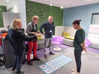 Päivän aikana sai kokeilla myös Mototiles-liikuntalaattoja. Niiden avulla voi kehittää motoriikkaa ja liikkuvuutta. Laatoilla pelaaminen osoittautui olevan myös erittäin hauskaa.