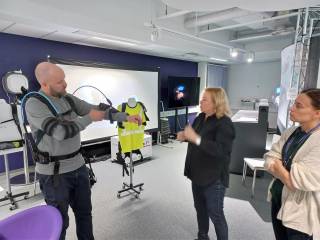 TAMKin opettajia mm. rakentamisen, hoitotyön, fysioterapian ja teollisuusteknologian aloilta sekä opettajakorkeakoulusta kävi tutustumassa eksoskeletoneihin. Itse kokeilemalla saa parhaan käsityksen niiden vaikutuksesta, toiminnasta ja hyödystä lihastyön keventämisessä. Labissa vierailleet opettajat aikoivat hyödyntää eksoskeleton-tietoutta myös opetuksessa.