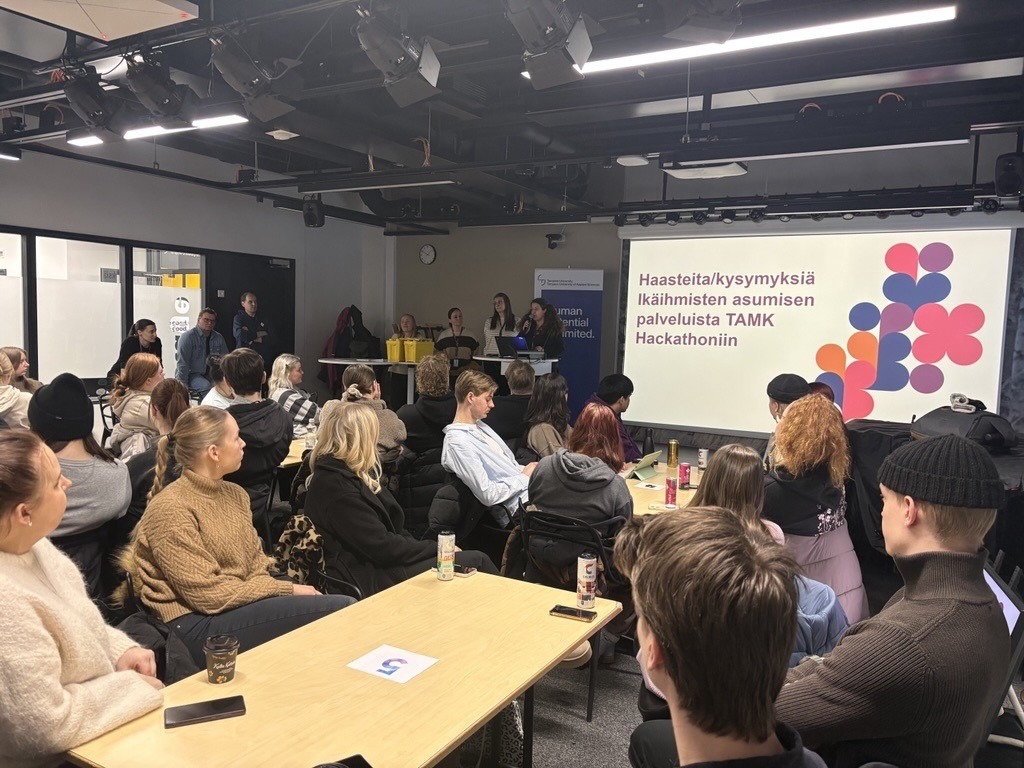 Uutta vuoden 2026 hackathonissa oli se, että haasteet, joihin opiskelijaryhmät lähtivät innovoimaan ratkaisuja, tulivat suoraan työelämästä. Opiskelijat saivat haasteet Pirkanmaan hyvinvointialueen ikääntyneiden asumispalvelujen edustajilta. Pirhan edustajat esittelivät opiskelijoille toimintaympäristön, johon haasteet sijoittuvat sekä kahdeksan erilaista haastetta, joihin toivottiin sosiaali- ja terveysalojen substanssiosaamisen ja teknisen osaamisen ja ymmärryksen yhdistäviä ratkaisuja. He myös sparrailivat tiimien ideoita tapahtuman aloituspäivänä, seurasivat innovaatioiden pitchausta ja palkitsivat parhaat tiimit.